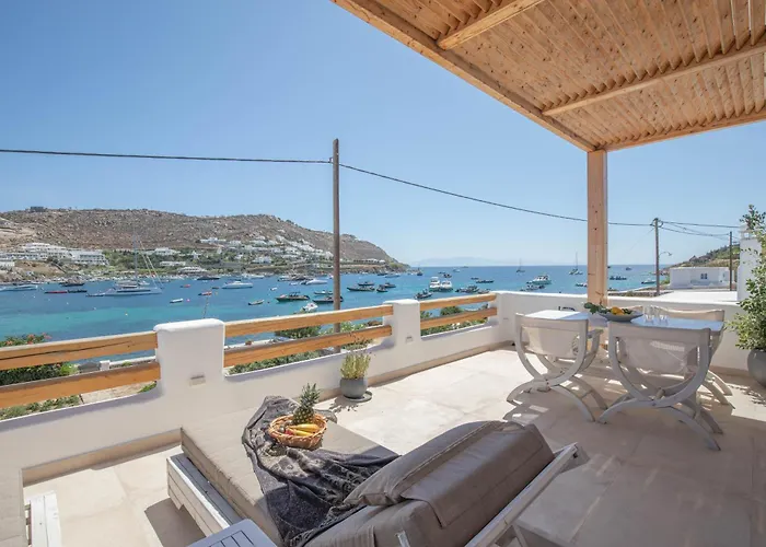 Com pátio e área para piquenique para o lazer dos hóspedes, a pousada Pursue Your Day Dreams Ornos à beira-mar está situada a uma distância de 3 km da Praia de Paranga. A acomodação inclui parque de estacionamento privado gratuito e terraço com vista para o mar.